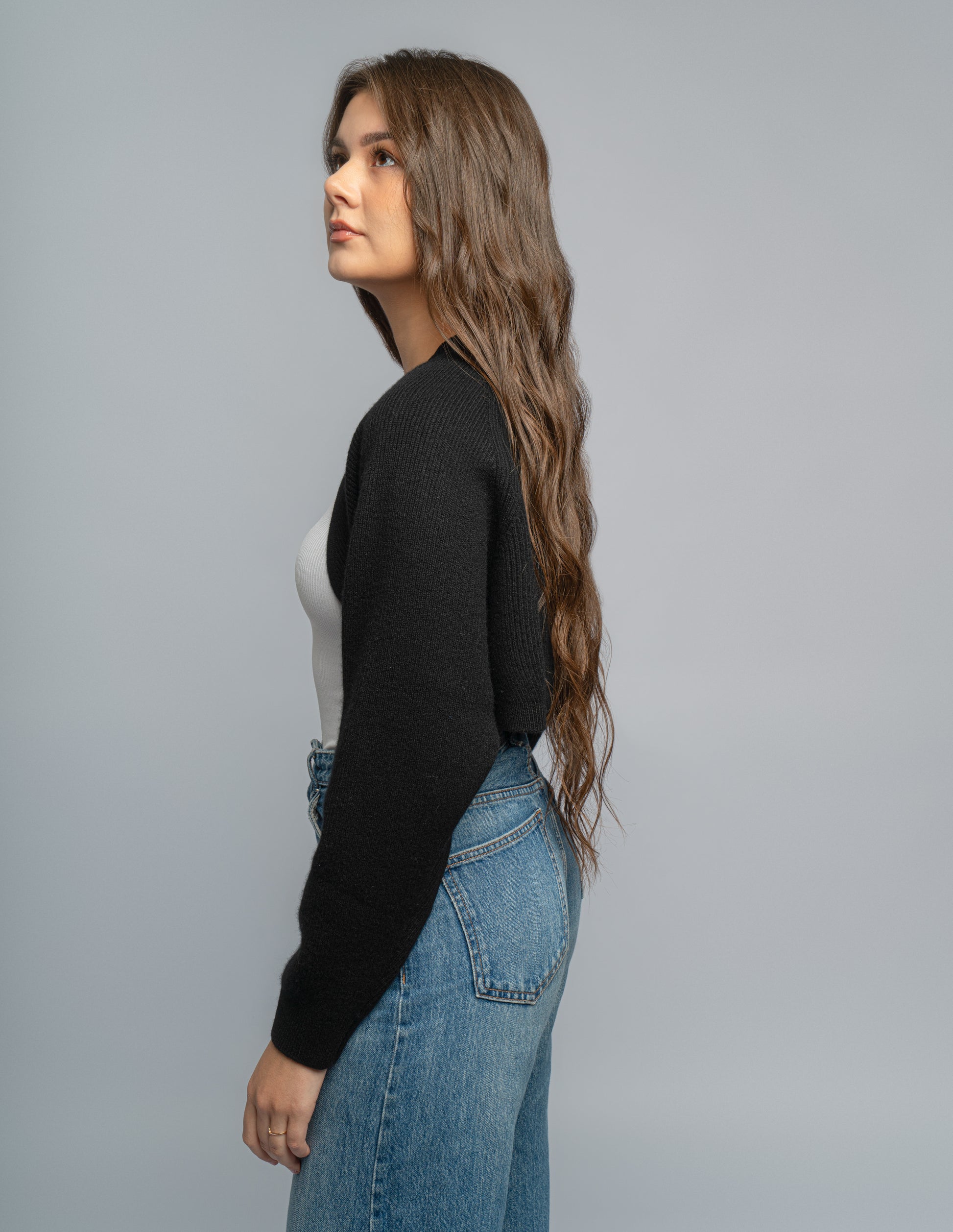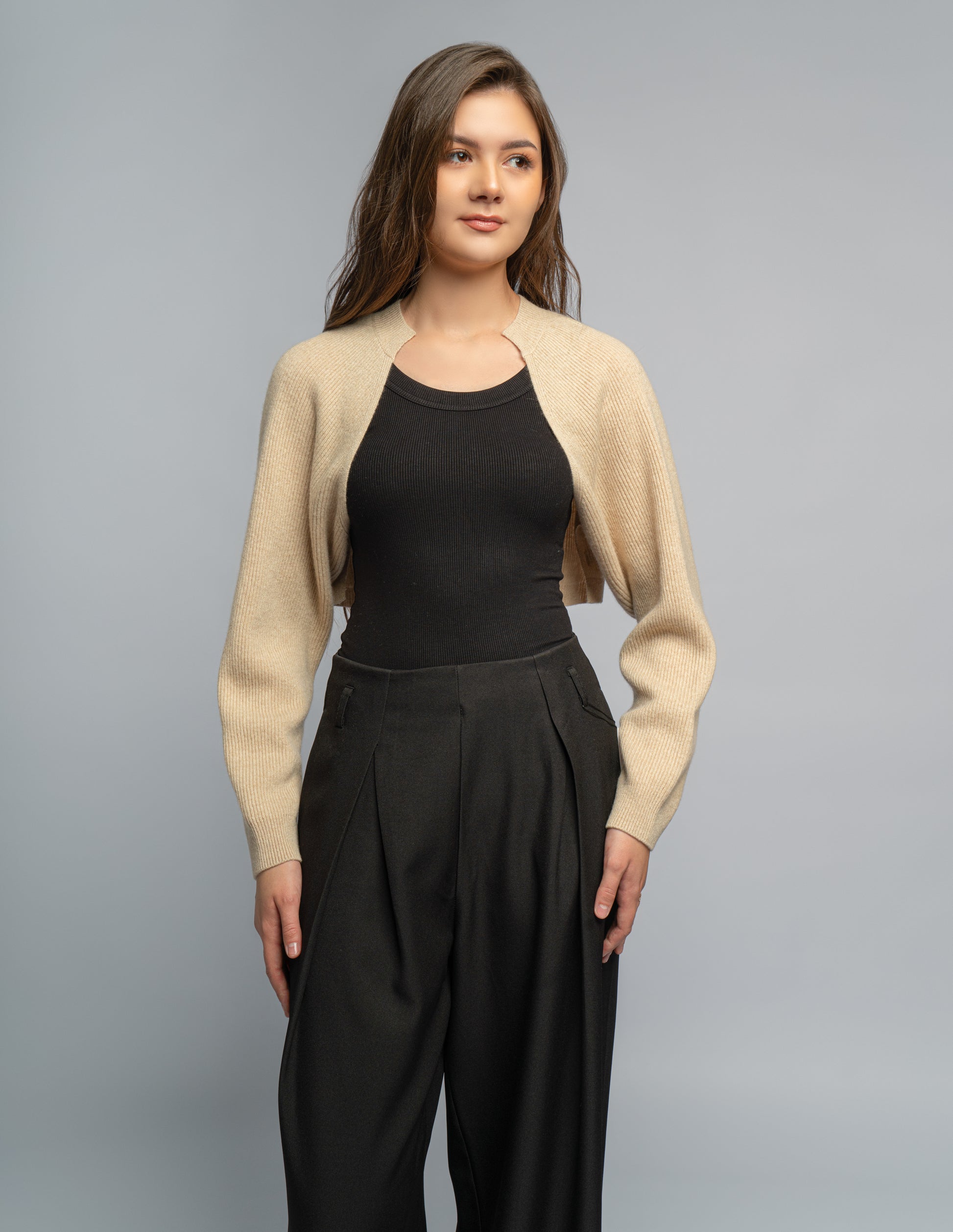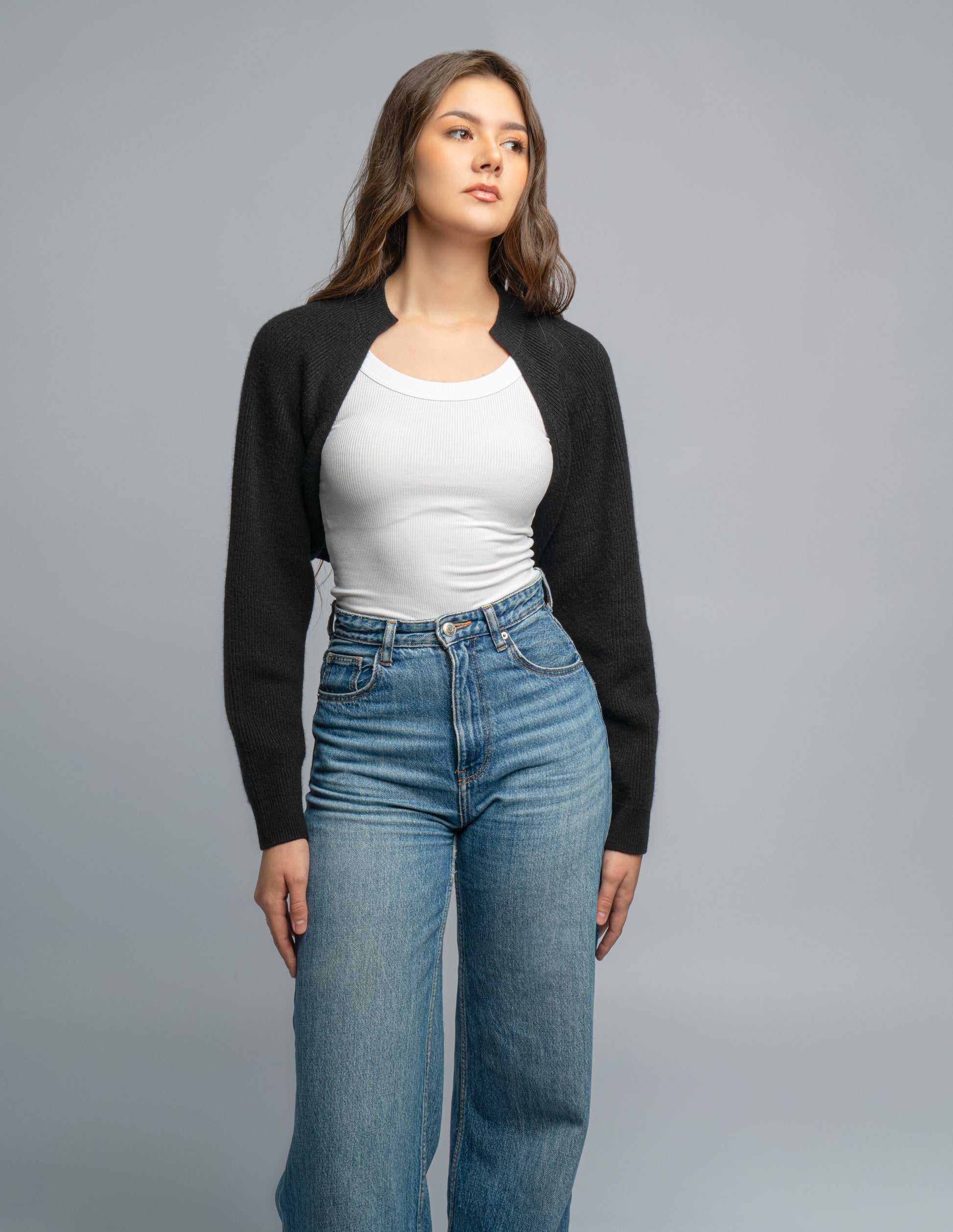 Cropped bolero style 100% Cashmere Cardigan.