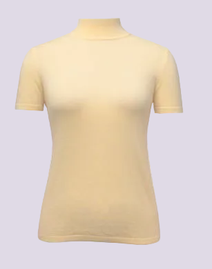 Women's high neck short sleeve 70% cashmere, 30% silk soft everyday shirt.